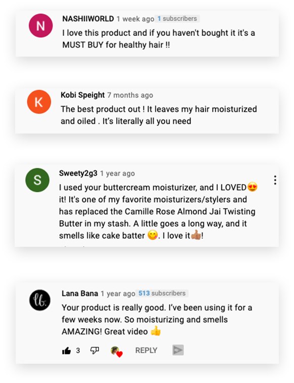 "I love how this moisturizer leaves no greasy residue on me & my daughter's hair yet it's super moisturizing! Our hair is growing so thick and healthy since using this cream. The quality is exceptional and that's why I keep my shelves STOCKED with the